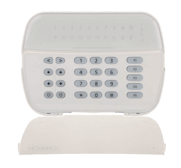 Ενσύρματο πληκτρολόγιο LED για πίνακες DSC Power Series Neo HS2016, λευκού χρώματος, με μοντέρνο σχεδιασμό, μεγάλα πλήκτρα, 5 προγραμματιζόμενα πλήκτρα, πλήκτρα φωτιάς / ιατρικής βοήθειας / πανικού, ρυθμιζόμενο οπίσθιο φωτισμό, ηχητική ένδειξη πλήκτρων, 1 είσοδο ζώνης ή έξοδο PGM, γλώσσες: En / Fr / Sp / Po.
